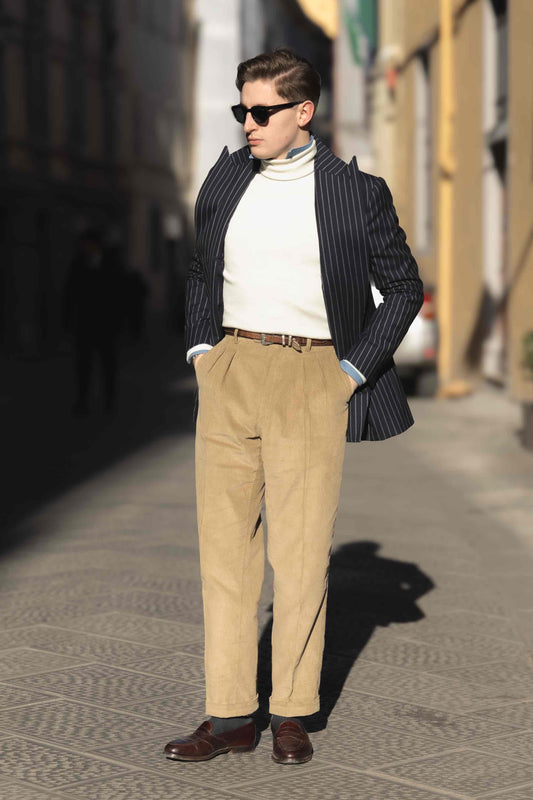 Pantalon en velours beige Lazare