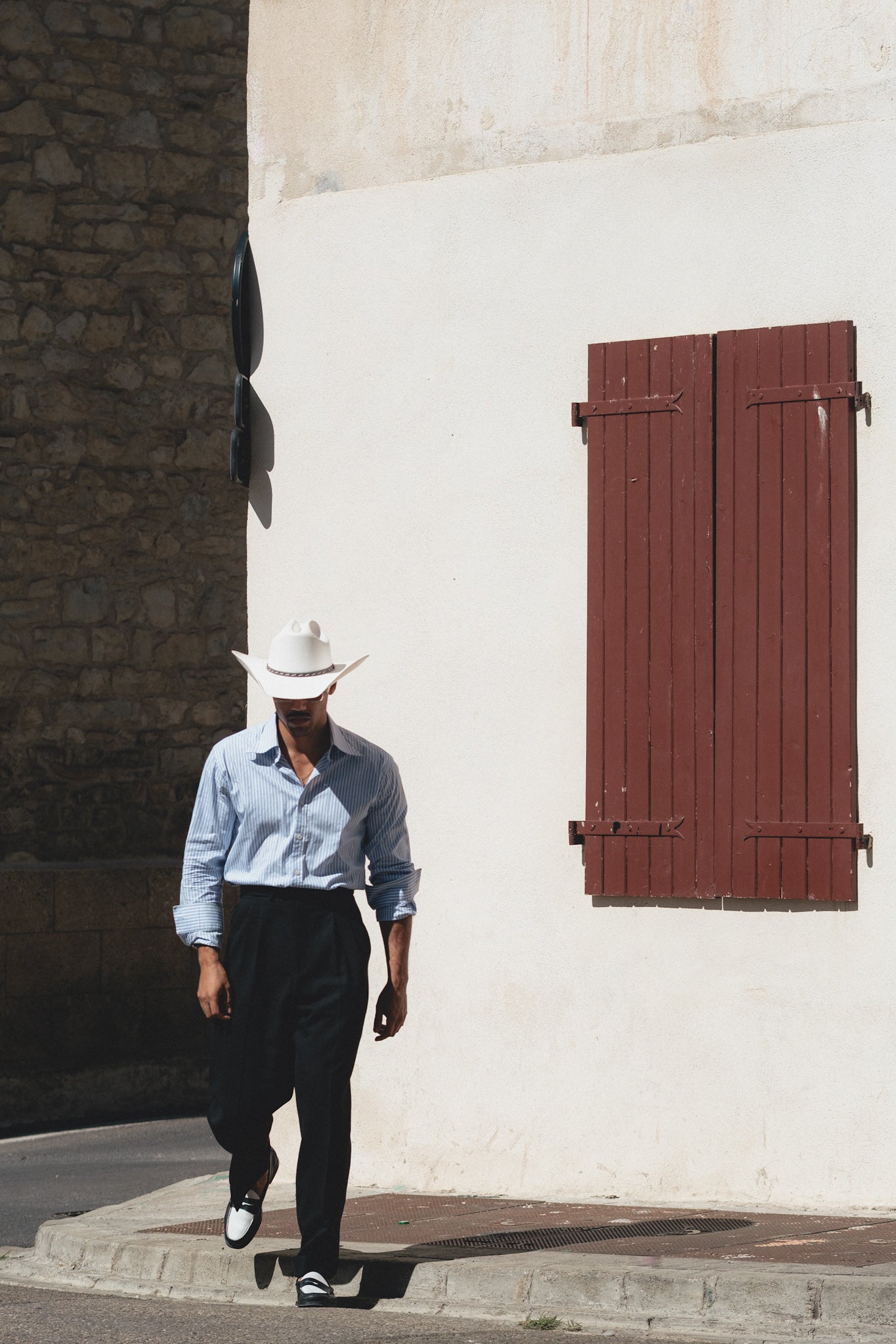 Le tissu provient du drapier anglais Alfred Brown : il assure un beau tombé et un vrai confort.